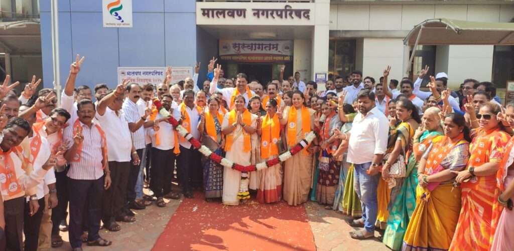 “हिंदुहृदयसम्राट शिवसेनाप्रमुख बाळासाहेब ठाकरे यांचा विजय असो”, “छत्रपती शिवाजी महाराज की जय”, “जय भवानी… जय शिवाजी”, “धर्मवीर आनंद दिघे साहेब यांचा विजय असो”, “खासदार नारायणराव राणे यांचा विजय असो”, “एकनाथ शिंदे यांचा विजय असो”, “आमदार निलेश राणे आगे बढो हम तुम्हारे साथ है”, “दत्ता तिथे सत्ता” अशा जोरदार घोषणांनी आणि फटाक्यांच्या आतषबाजीत आज मालवण शहराचा आसमंत दणाणून गेला. शिंदे शिवसेनेच्या पदाधिकारी, शिवसैनिक आणि शेकडो कार्यकर्त्यांच्या उपस्थितीत नवनिर्वाचित नगराध्यक्षा सौ. ममता वराडकर यांनी जल्लोषी वातावरणात मालवण नगरपालिकेत जाऊन नगराध्यक्ष पदाचा अधिकृत पदभार स्वीकारला.